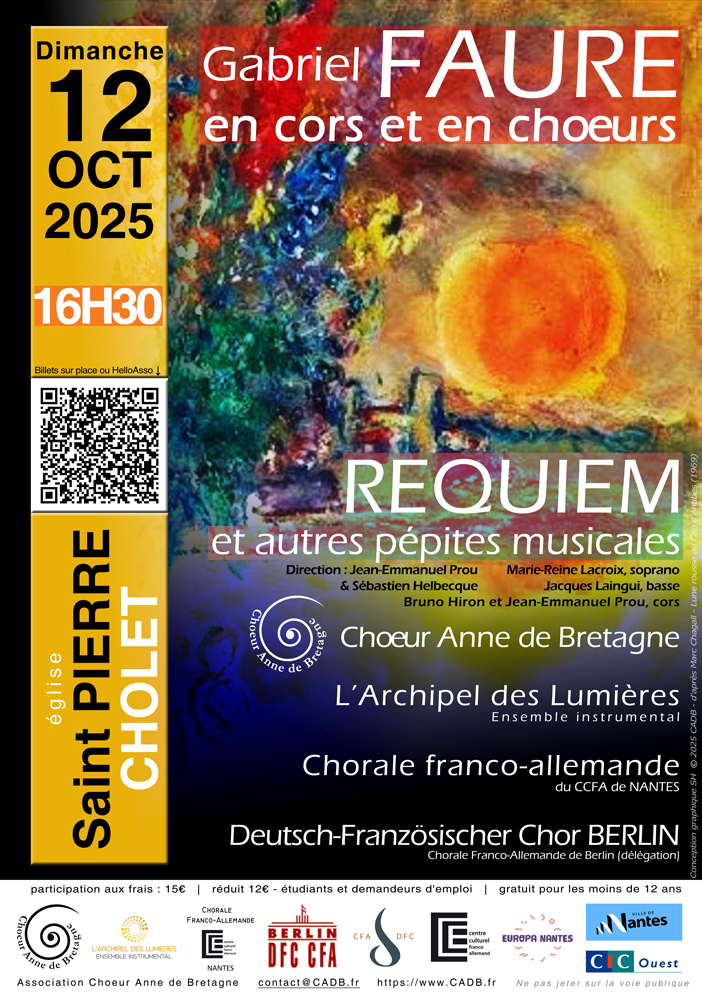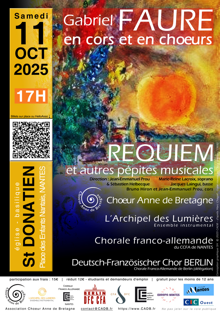Les chœurs et les cors d'harmonie seront à l'honneur ! Une dizaine de musiciens et une soixantaine de choristes, en chair et en os, vont vous interpréter avec tout leur cœur et en y donnant du corps, les plus beaux passages du compositeur Gabriel Fauré.
